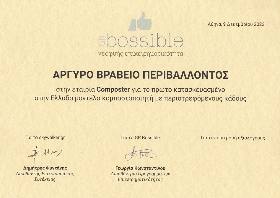 Η ΚοινΣΕπ “Ζείδωρος” βρίσκεται πίσω από τη σύλληψη και την κατασκευή του μοντέλου κομποστοποιητή “composter” πλήρως σύμφωνου με τις αρχές της κυκλικής οικονομία και με δράση στην ενημέρωση και ευαισθητοποίηση ομάδων-στόχος όπως μαθητές, εκπαιδευτικοί, πολίτες, τοπική αυτοδιοίκηση στη διαδικασία της κομποστοποίησης, και την κυκλική διαχείριση  των απορριμμάτων.